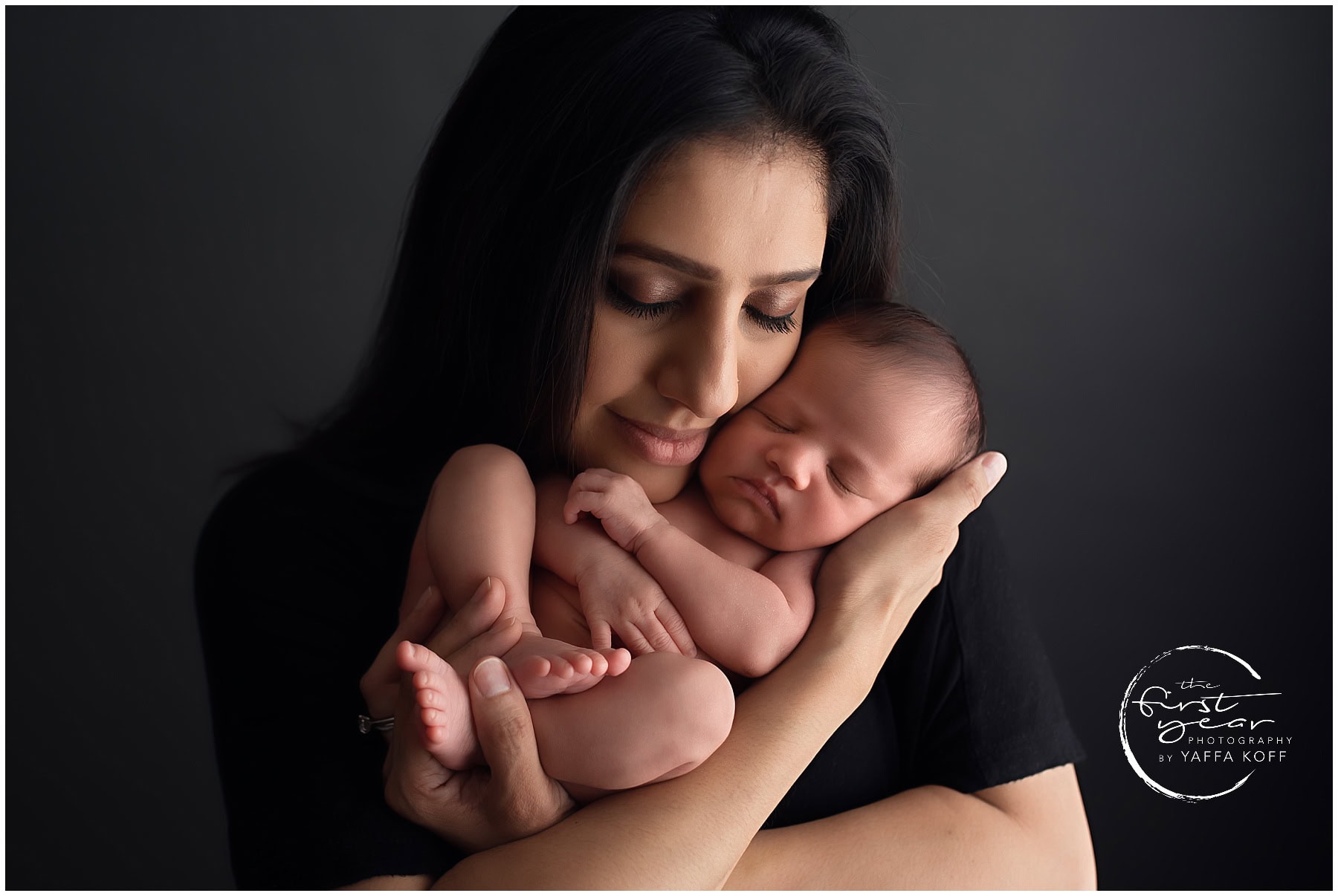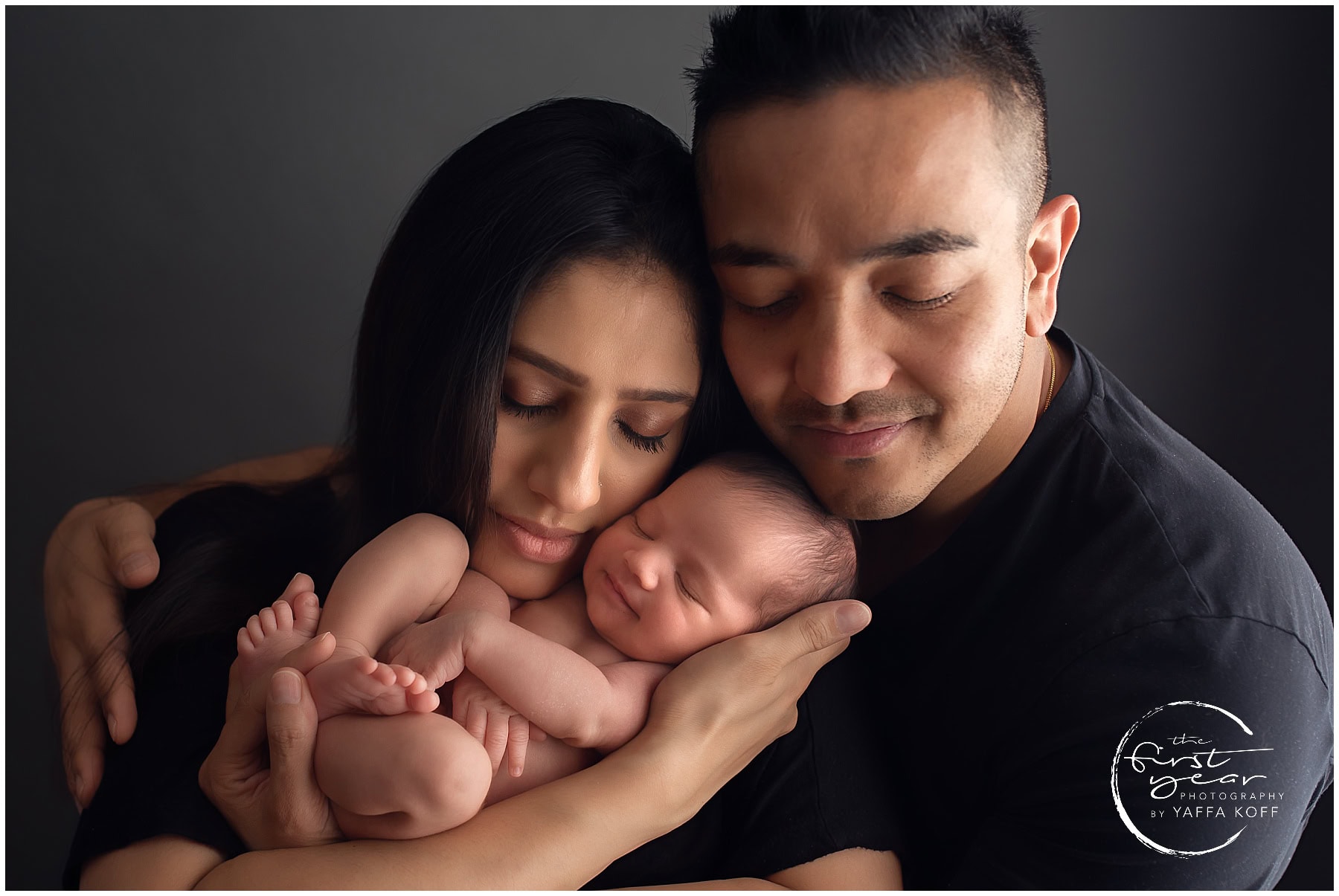 As a newborn photographer, I love getting to meet and snuggle precious babies when they are days/weeks old. I’d like to introduce to you baby Reva 🙂 She was so sweet to photograph. Reva means Star Goddess in Sanskrit. I had the pleasure of photographing she and her parents in my studio recently… what an absolutely lovely family! Reva did wonderfully throughout her newborn photography session with me. I got some really good eye contact from her in a few shots and even a few smiles.